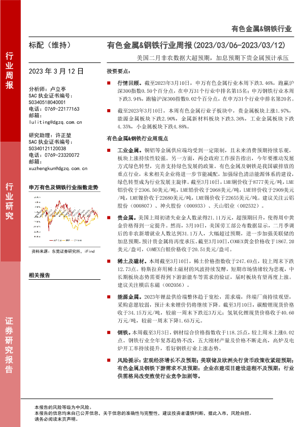 【东莞证券】【20230312】20230312-东莞证券-有色金属&钢铁行业周报:美国二月非农数据大超预期,加息预期下贵金属预计承压-13页