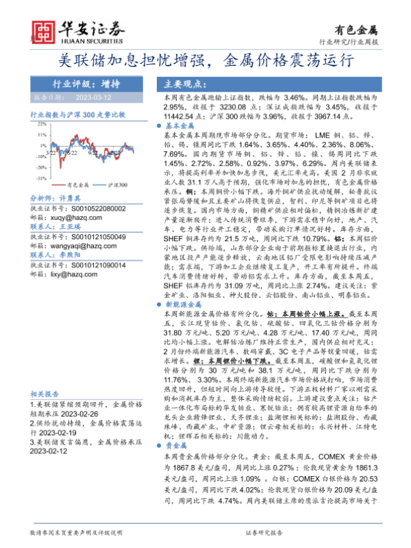 【华安证券】【20230312】20230312-华安证券-有色金属行业周报:美联储加息担忧增强,金属价格震荡运行-17页