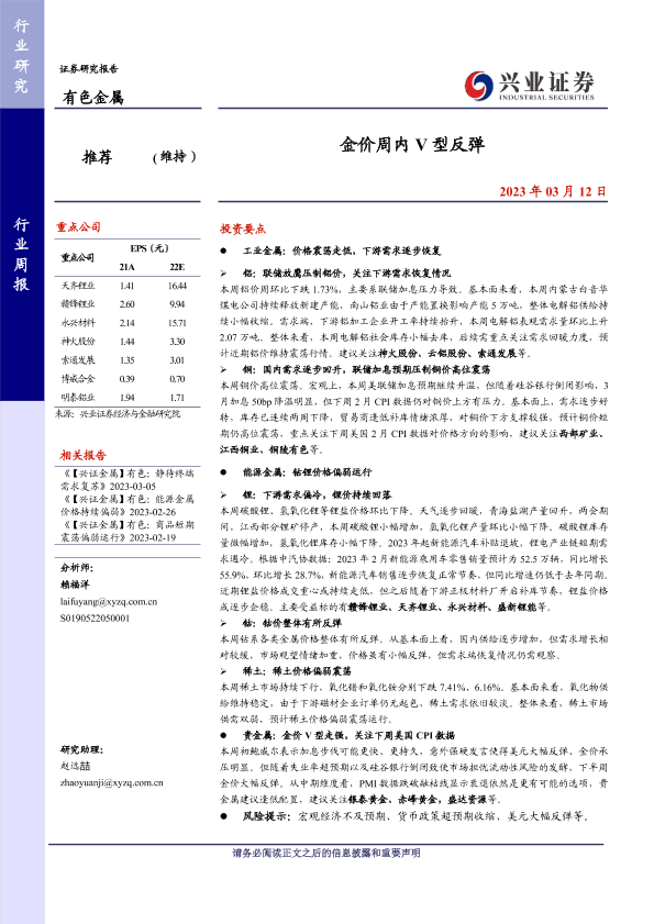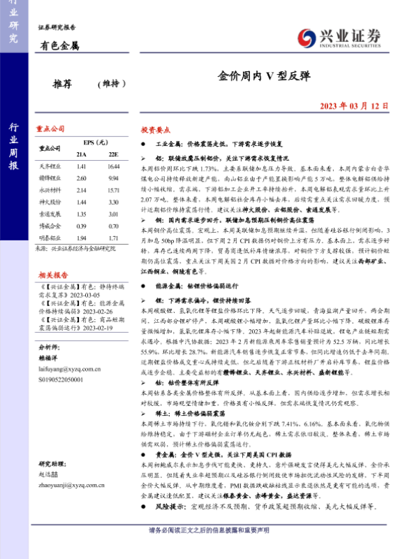 【兴业证券】【20230312】20230312-兴业证券-有色金属行业周报:金价周内V型反弹-21页