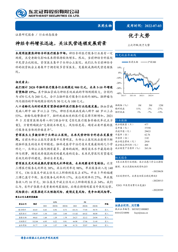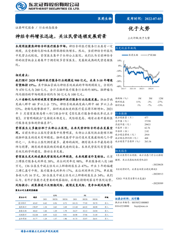 【东北证券】【20220703】神经专科增长迅速,关注民营连锁发展前景-25页