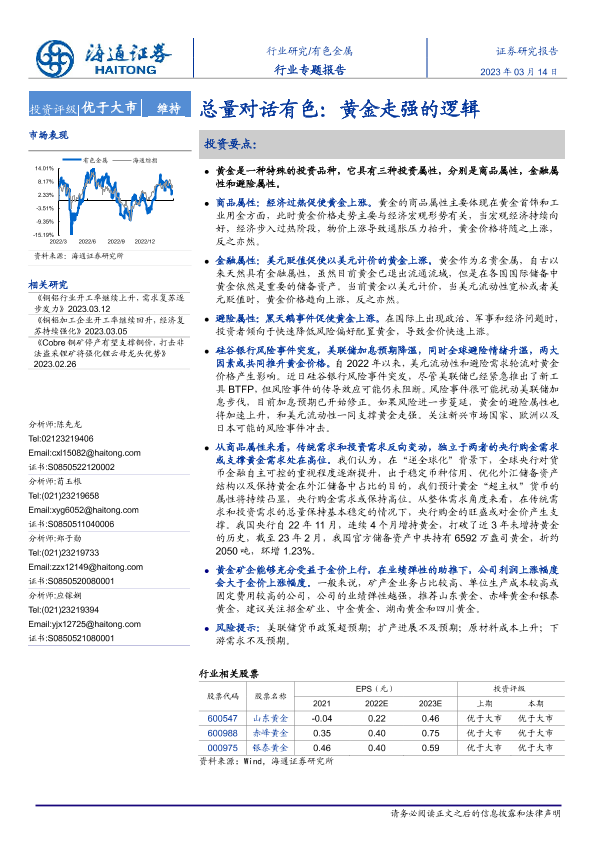 【海通证券】【20230314】总量对话有色:黄金走强的逻辑-13页