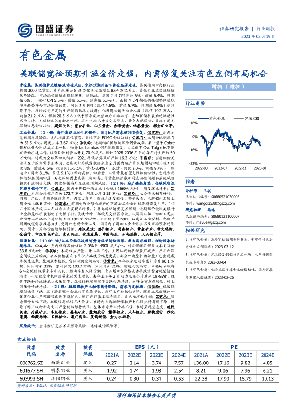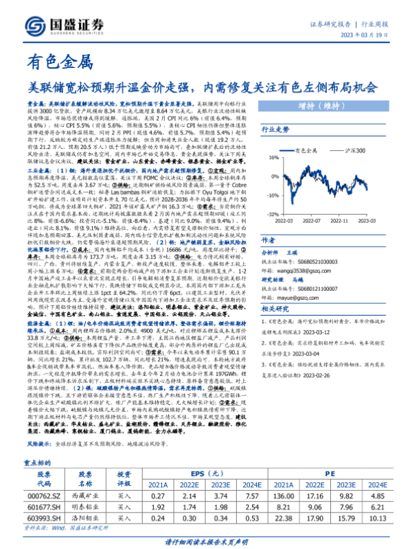 【国盛证券】【20230319】20230319-国盛证券-有色金属行业周报:美联储宽松预期升温金价走强,内需修复关注有色左侧布局机会-27页