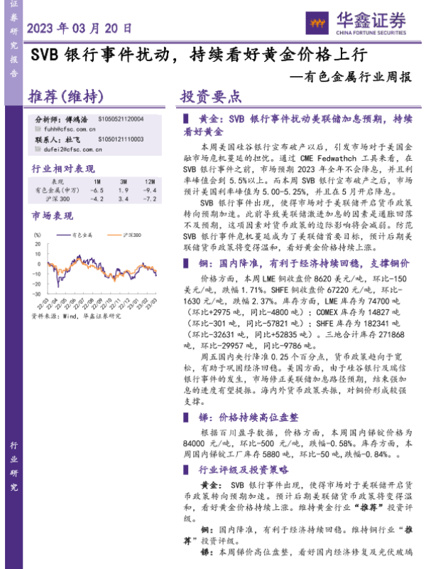 【华鑫证券】【20230320】20230320-华鑫证券-有色金属行业周报:SVB银行事件扰动,持续看好黄金价格上行-12页