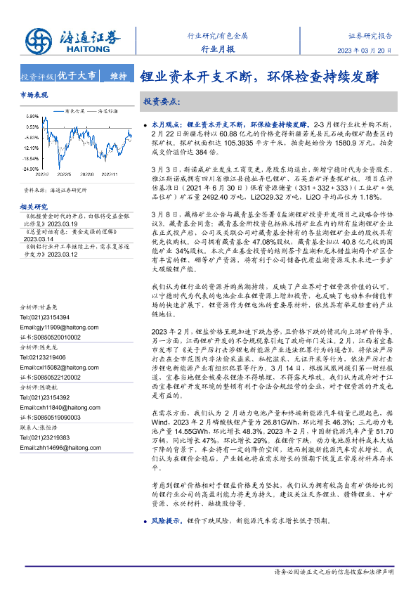 【海通证券】【20230320】20230320-海通证券-有色金属行业月报:锂业资本开支不断,环保检查持续发酵-10页