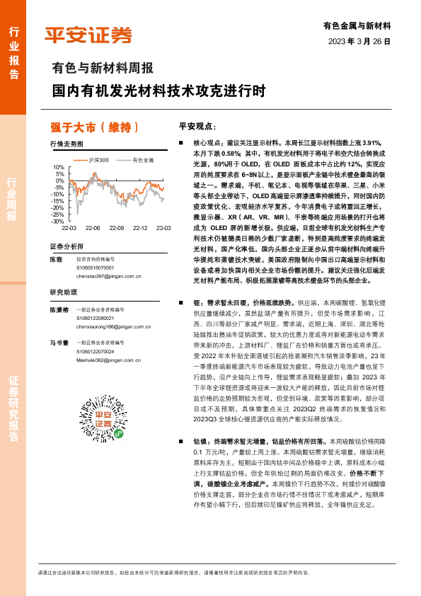【平安证券】【20230326】20230326-平安证券-有色与新材料周报:国内有机发光材料技术攻克进行时-15页
