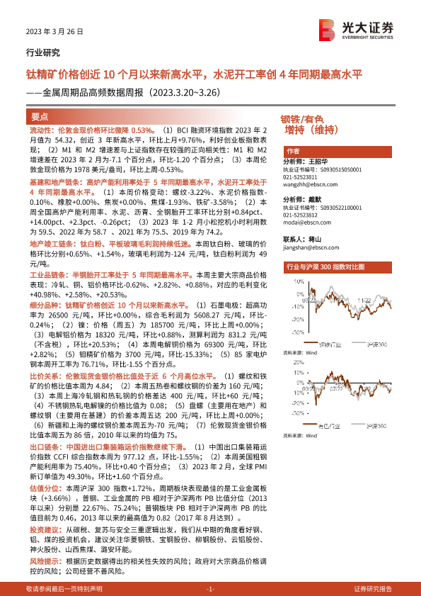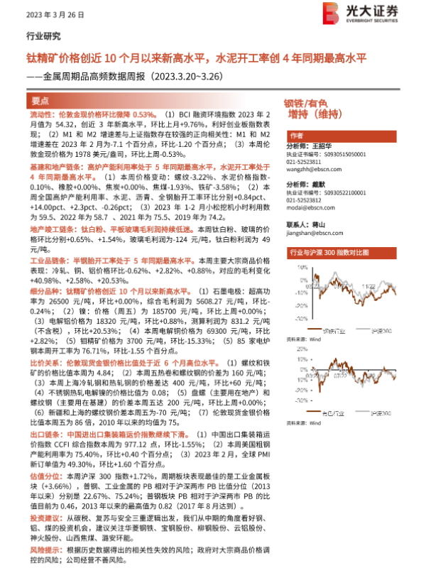 【光大证券】【20230326】金属周期品高频数据周报:钛精矿价格创近10个月以来新高水平,水泥开工率创4年同期最高水平-26页