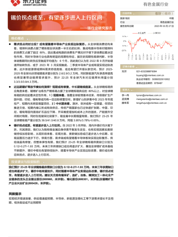 【东方证券】【20230327】20230327-东方证券-锡行业研究报告:锡价拐点或至,有望逐步进入上行区间-34页