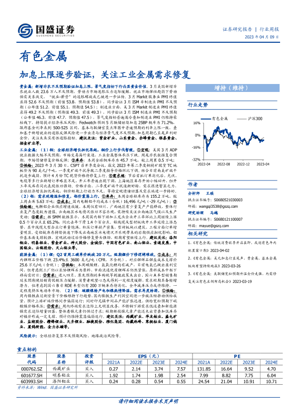 【国盛证券】【20230409】20230409-国盛证券-有色金属行业周报:加息上限逐步验证,关注工业金属需求修复-31页