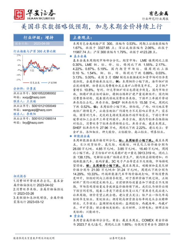 【华安证券】【20230409】20230409-华安证券-有色金属行业周报:美国非农数据略低预期,加息末期金价持续上行-17页