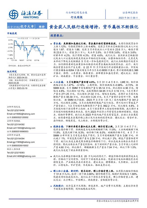 【海通证券】【20230409】20230409-海通证券-有色金属行业周报:黄金获人民银行连续增持,货币属性不断强化-14页