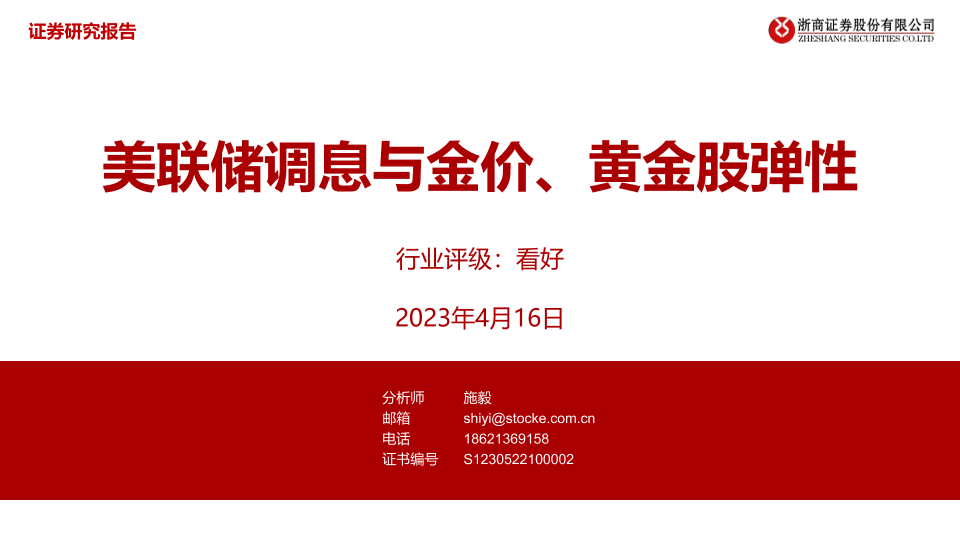 【浙商证券】【20230416】美联储调息与金价、黄金股弹性-31页