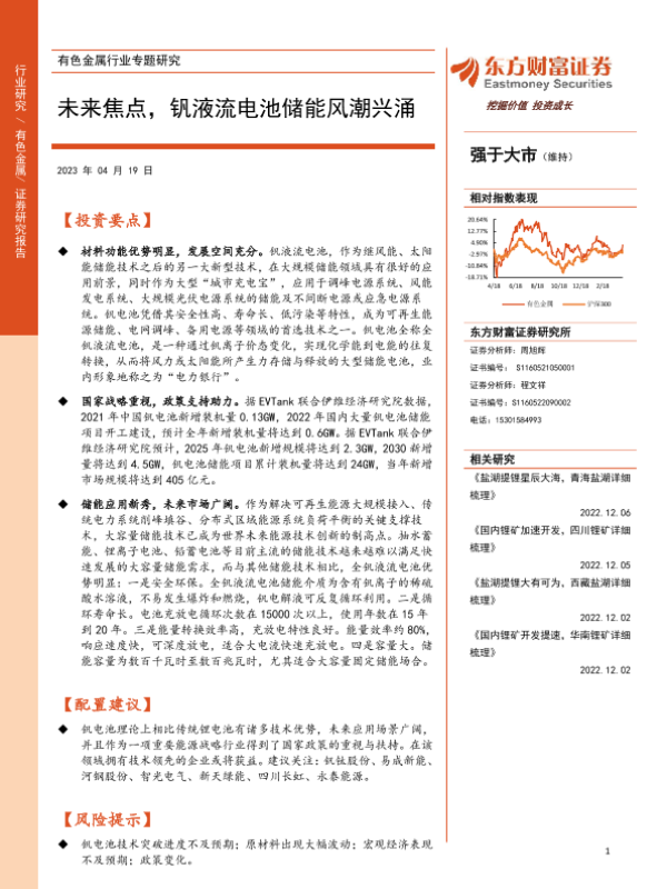【东方财富证券】【20230419】20230419-东方财富证券-有色金属行业专题研究:未来焦点,钒液流电池储能风潮兴涌-20页