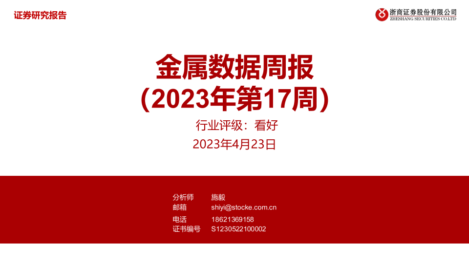 【浙商证券】【20230423】金属数据周报(2023年第17周)-21页