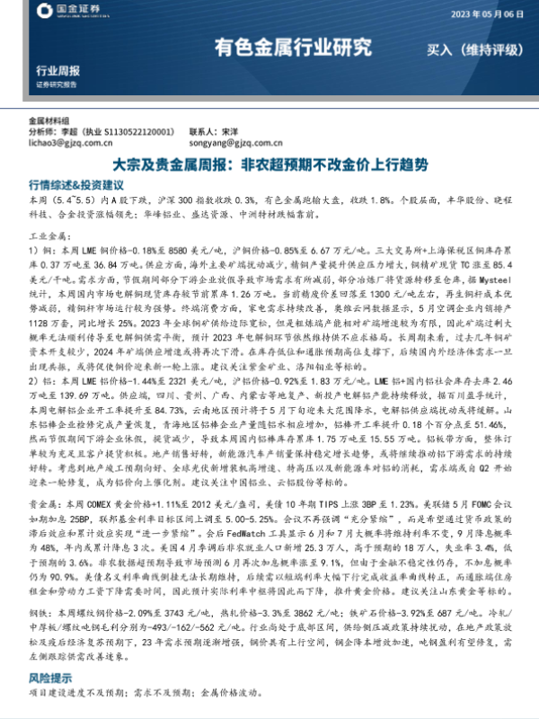 【国金证券】【20230506】20230506-国金证券-有色金属行业研究:大宗及贵金属周报:非农超预期不改金价上行趋势-13页
