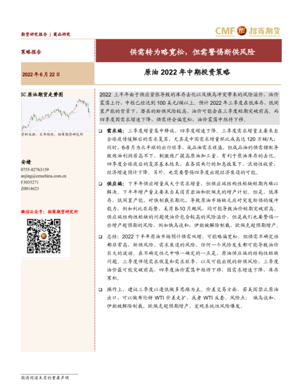 【招商期货】【20220622】原油2022年中期投资策略:供需转为略宽松,但需警惕断供风险-26页