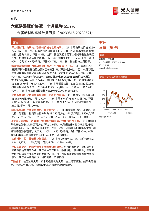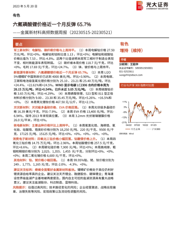 【光大证券】【20230520】20230520-光大证券-金属新材料高频数据周报:六氟磷酸锂价格近一个月反弹65.7%-24页