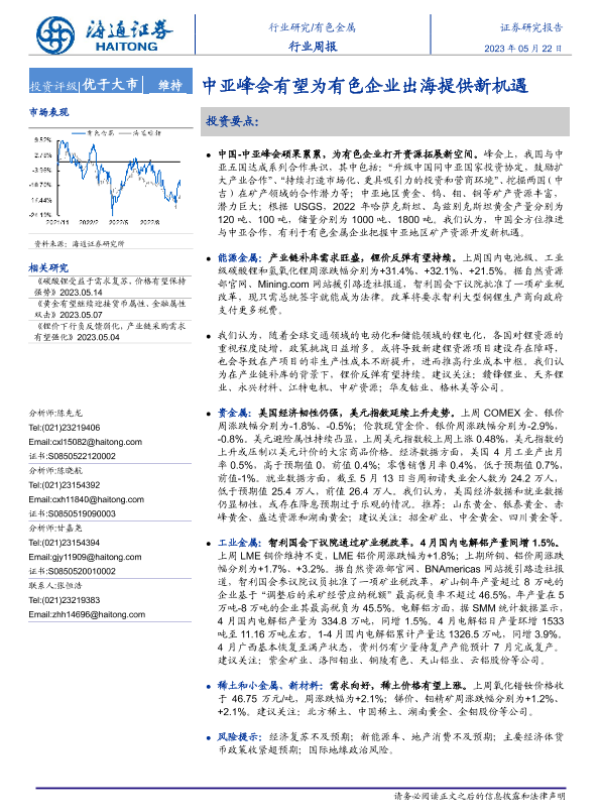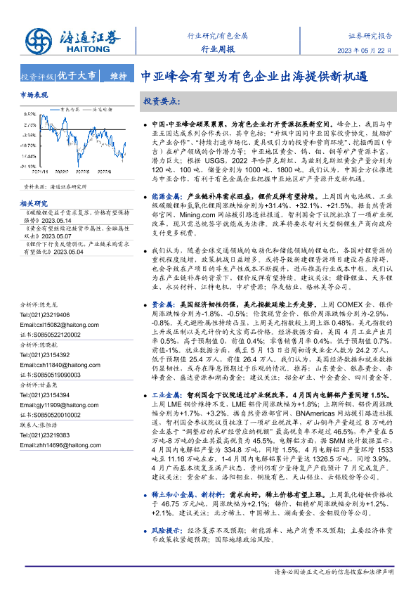 【海通证券】【20230522】20230522-海通证券-有色金属行业周报:中亚峰会有望为有色企业出海提供新机遇-14页