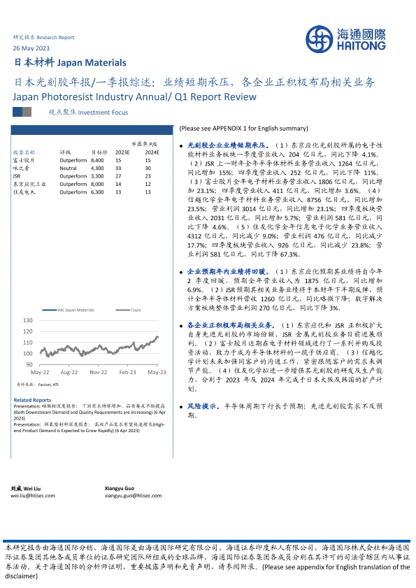 【海通国际】【20230526】日本光刻胶年报/一季报综述:业绩短期承压,各企业正积极布局相关业务-13页