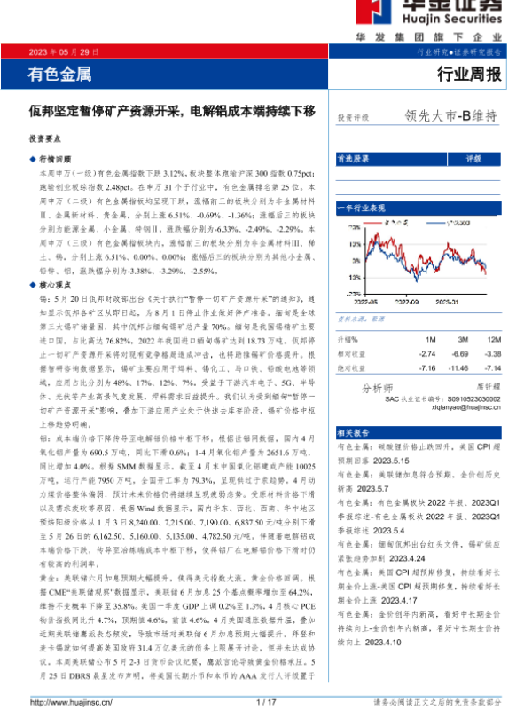 【华金证券】【20230529】20230529-华金证券-有色金属行业周报:佤邦坚定暂停矿产资源开采,电解铝成本端持续下移-17页