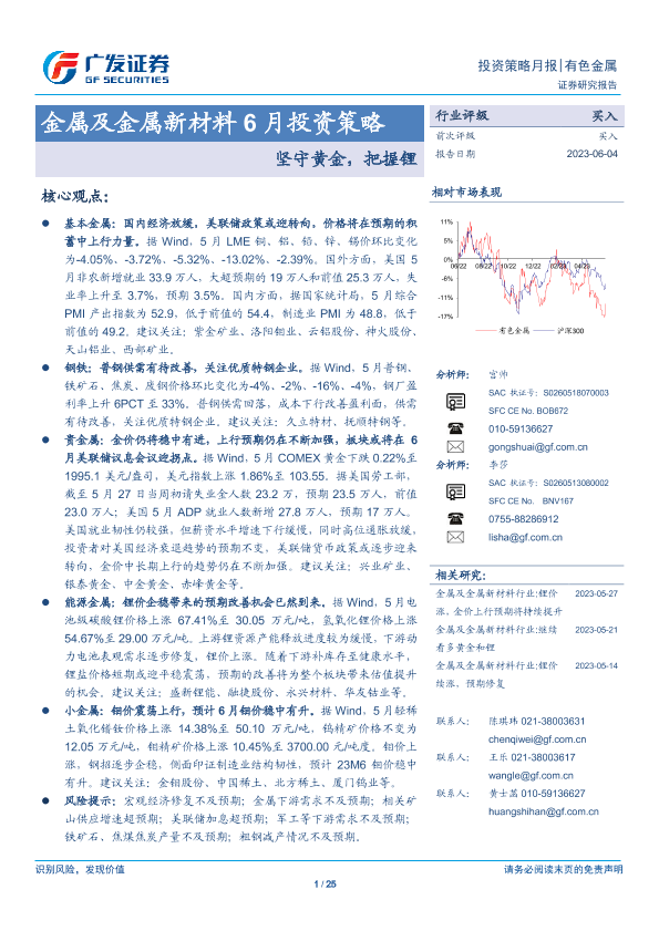 【广发证券】【20230604】金属及金属新材料6月投资策略:坚守黄金,把握锂-25页