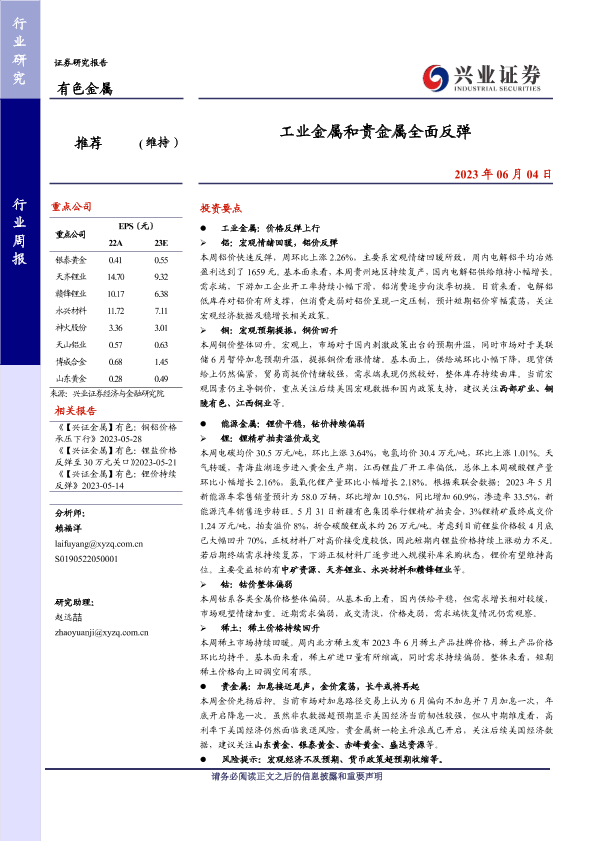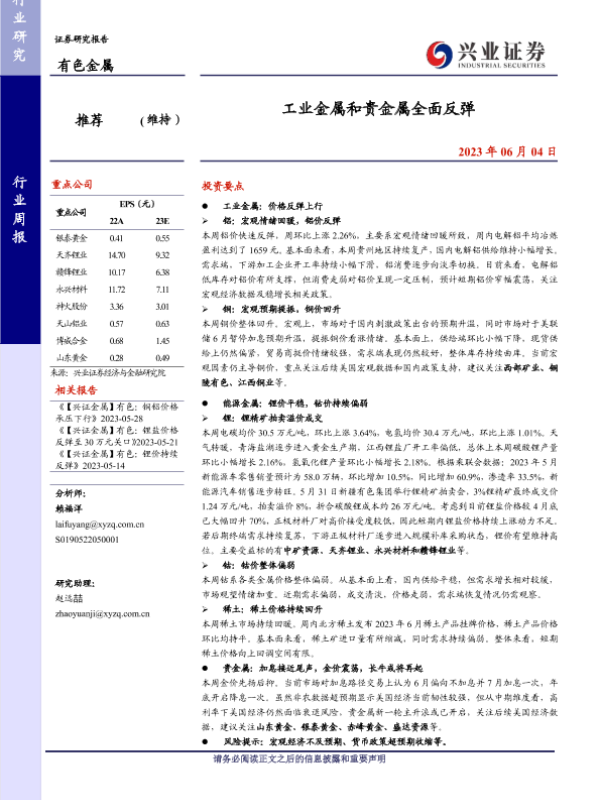【兴业证券】【20230604】20230604-兴业证券-有色金属行业周报:工业金属和贵金属全面反弹-21页