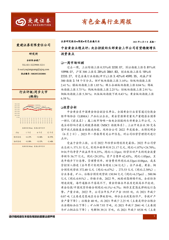 【爱建证券】【20230605】20230605-爱建证券-有色金属行业周报:中金黄金业绩点评:央企控股的头部黄金上市公司有望稳健增长-43页