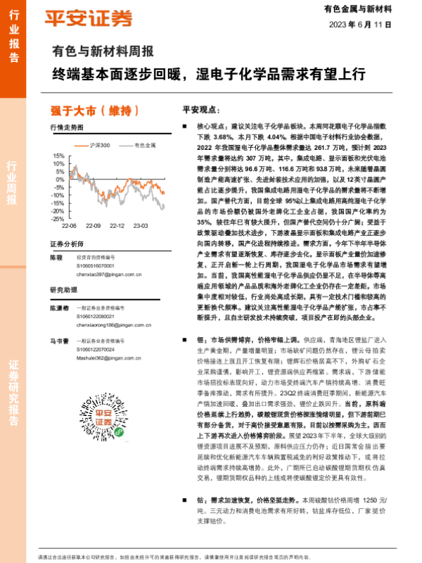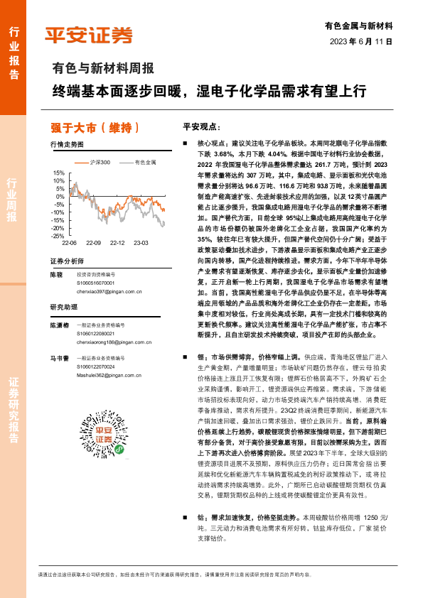 【平安证券】【20230611】20230611-平安证券-有色与新材料周报:终端基本面逐步回暖,湿电子化学品需求有望上行-17页