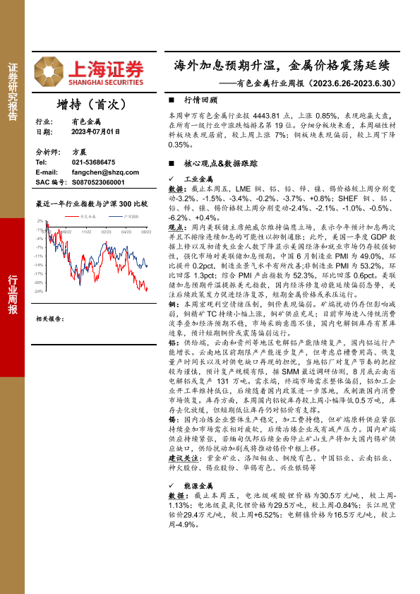 【上海证券】【20230701】20230701-上海证券-有色金属行业周报:海外加息预期升温,金属价格震荡延续-15页