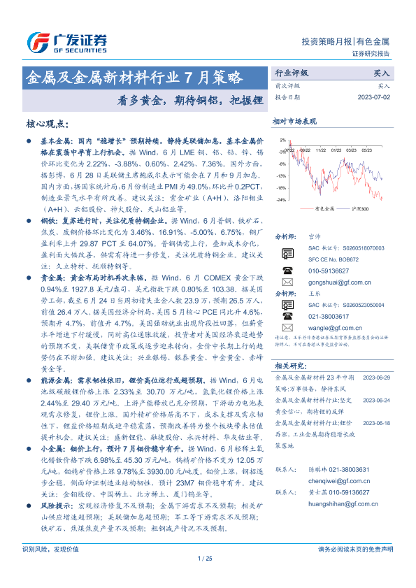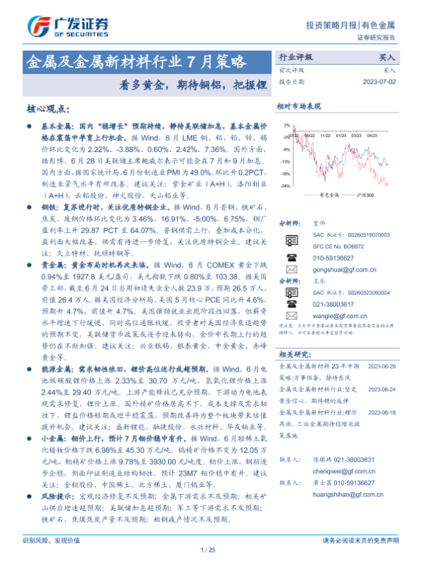 【广发证券】【20230702】金属及金属新材料行业7月策略:看多黄金,期待铜铝,把握锂-25页