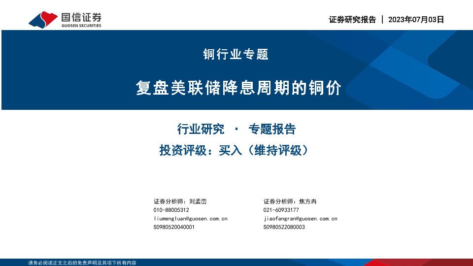 【国信证券】【20230703】20230703-国信证券-铜行业专题:复盘美联储降息周期的铜价-22页