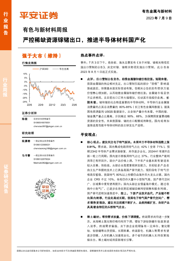 【平安证券】【20230709】20230709-平安证券-有色与新材料周报:严控稀缺资源镓锗出口,推进半导体材料国产化-16页