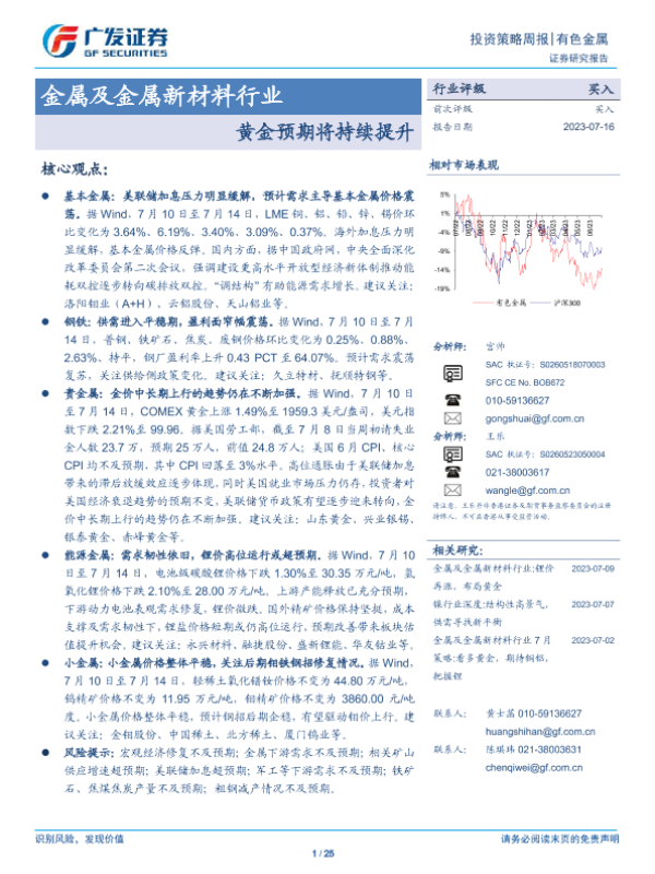 【广发证券】【20230716】20230716-广发证券-金属及金属新材料行业:黄金预期将持续提升-25页