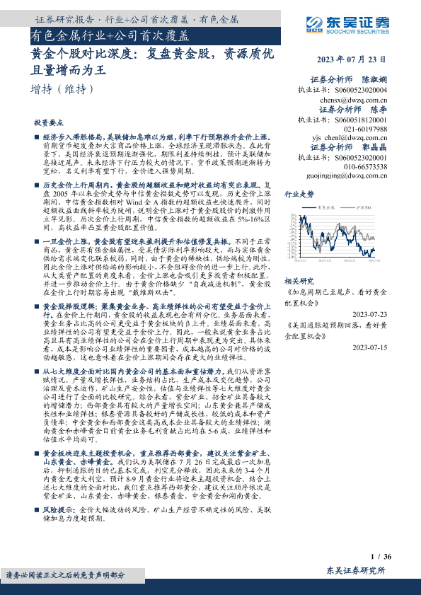 【东吴证券】【20230723】有色金属行业+公司首次覆盖:黄金个股对比深度:复盘黄金股,资源质优且量增而为王-39页