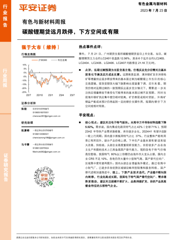 【平安证券】【20230723】有色与新材料周报:碳酸锂期货远月跌停,下方空间或有限-16页