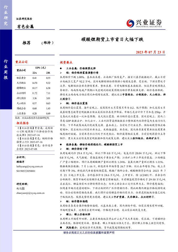 【兴业证券】【20230723】20230723-兴业证券-有色金属行业周报:碳酸锂期货上市首日大幅下跌-19页