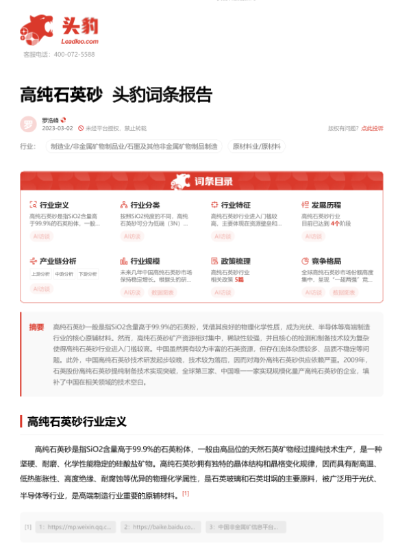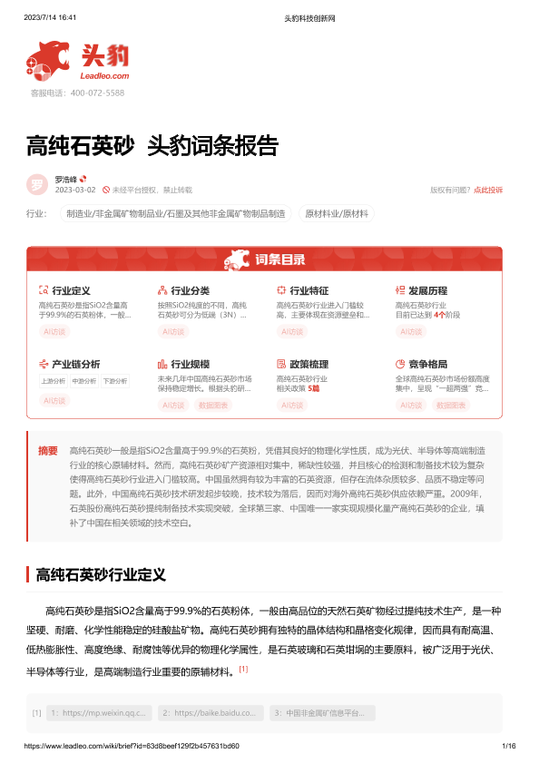 【头豹研究院】【20230728】高纯石英砂 头豹词条报告-16页