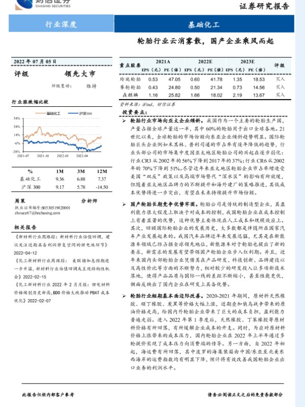 【财信证券】【20220705】基础化工行业深度:轮胎行业云消雾散,国产企业乘风而起-22页
