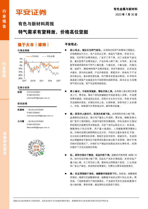 【平安证券】【20230730】20230730-平安证券-有色与新材料周报:特气需求有望释放,价格高位坚挺-16页