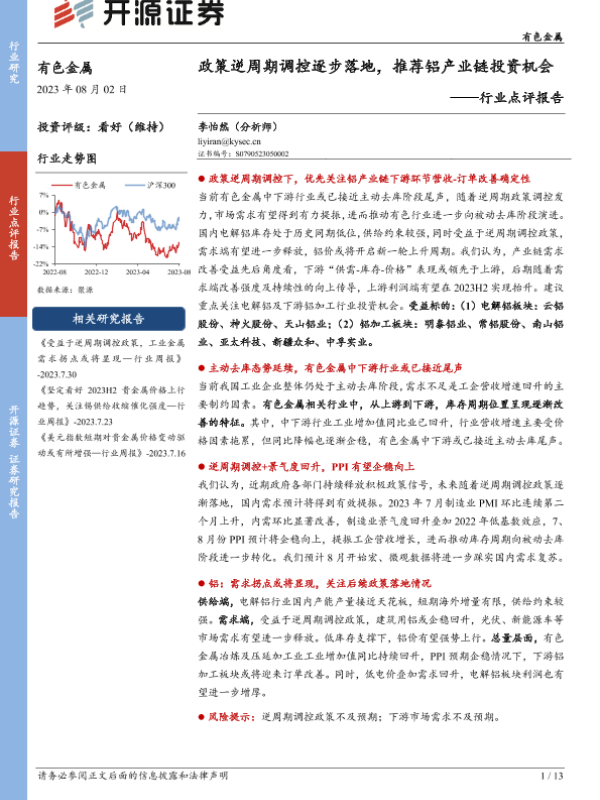 【开源证券】【20230802】政策逆周期调控逐步落地,推荐铝产业链投资机会-13页