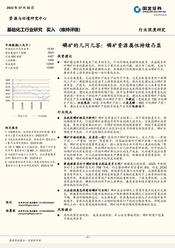 【国金证券】【20220703】基础化工行业磷矿的几问几答:磷矿资源属性持续凸显-24页