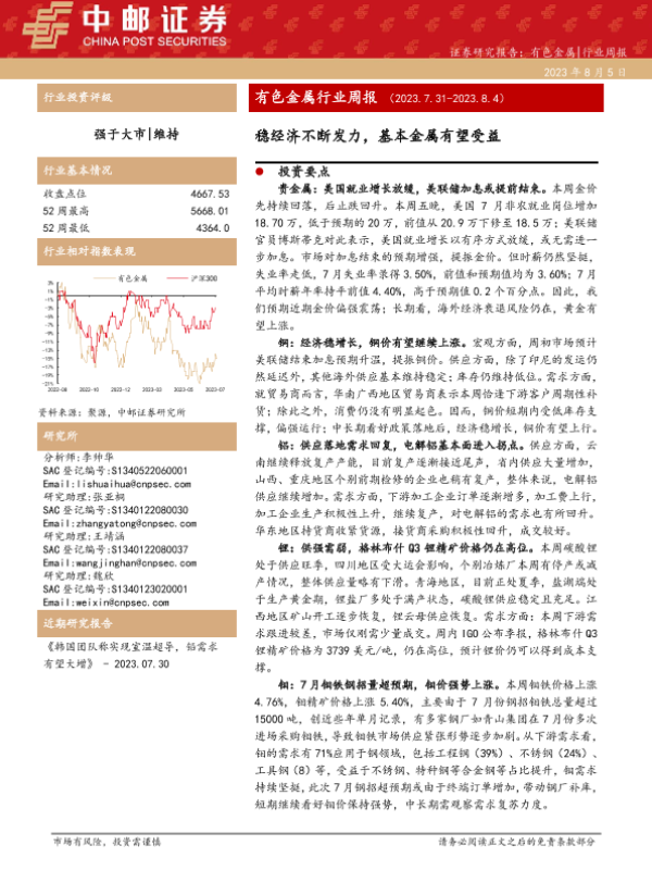 【中邮证券】【20230805】20230805-中邮证券-有色金属行业周报:稳经济不断发力,基本金属有望受益-15页