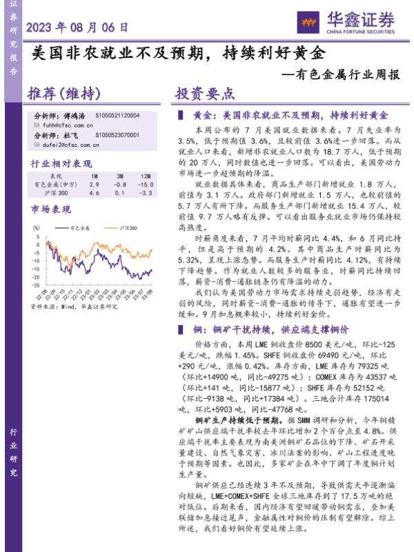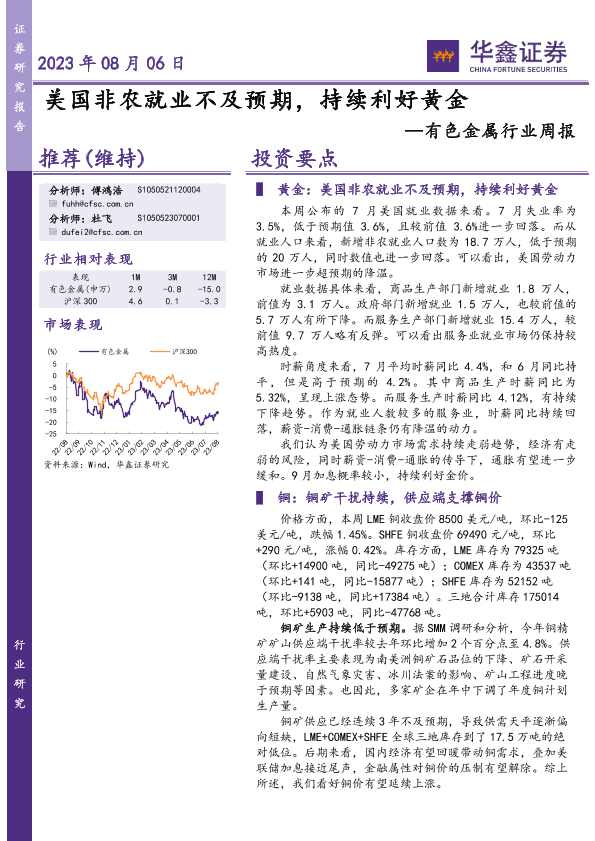 【华鑫证券】【20230806】20230806-华鑫证券-有色金属行业周报:美国非农就业不及预期,持续利好黄金-15页
