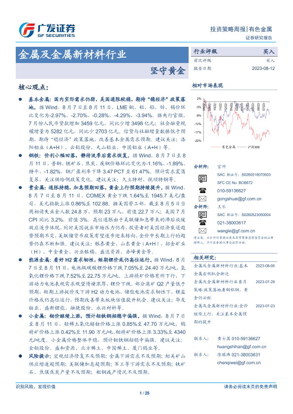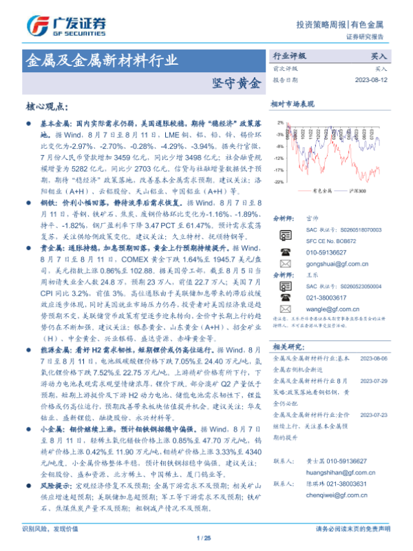 【广发证券】【20230812】金属及金属新材料行业投资策略周报:坚守黄金-25页
