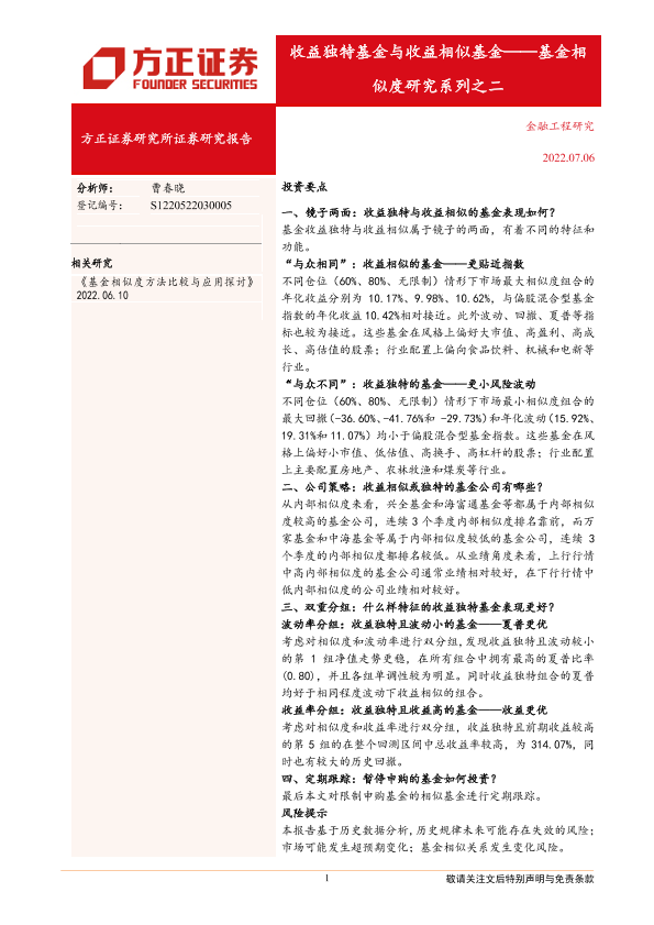 【方正证券】【20220706】基金相似度研究系列之二:收益独特基金与收益相似基金-15页