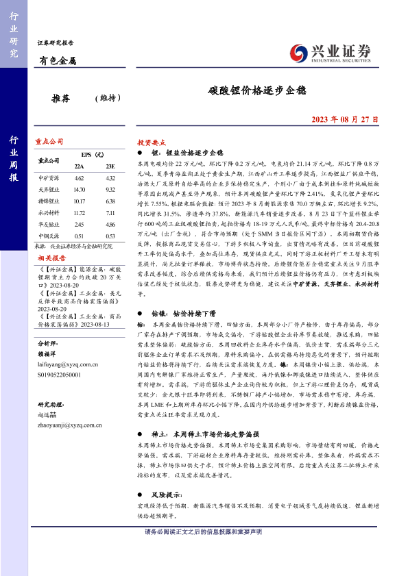 【兴业证券】【20230827】20230827-兴业证券-有色金属行业周报:碳酸锂价格逐步企稳-18页