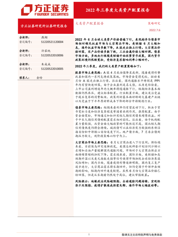 【方正证券】【20220705】2022年三季度大类资产配置报告-23页