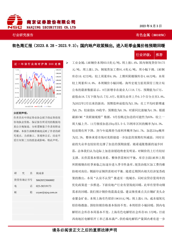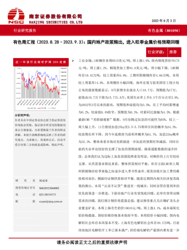 【南京证券】【20230903】20230903-南京证券-有色周汇报:国内地产政策频出,进入旺季金属价格预期回暖-10页