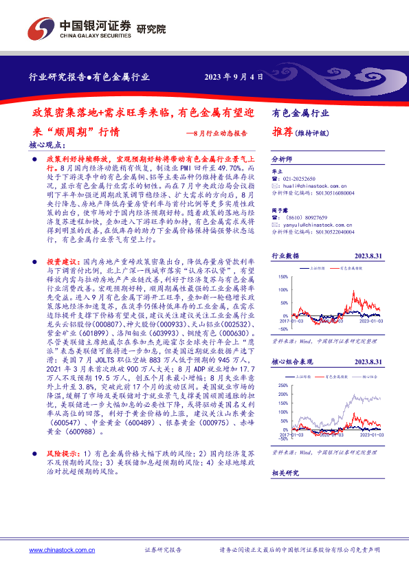 【银河证券】【20230904】20230904-中国银河-有色金属8月行业动态报告:政策密集落地+需求旺季来临,有色金属有望迎来“顺周期”行情-24页