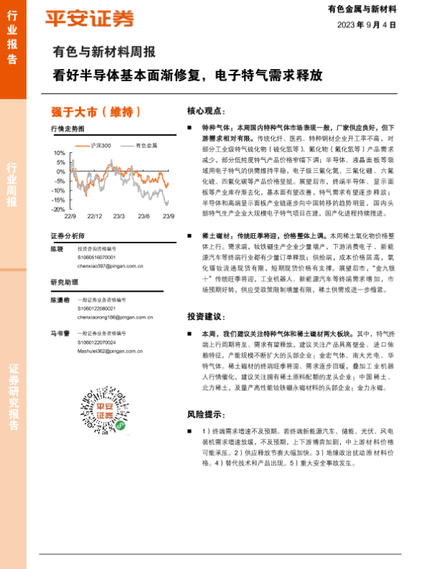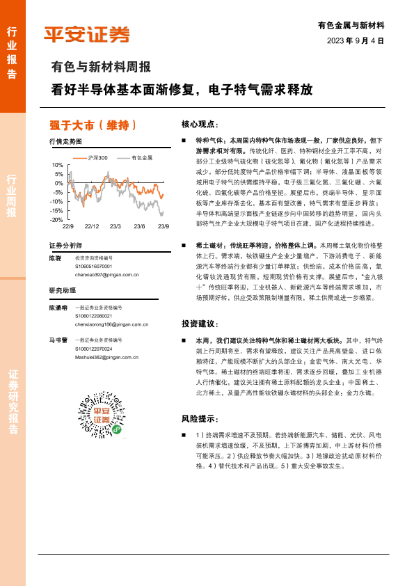 【平安证券】【20230904】20230904-平安证券-有色与新材料周报:看好半导体基本面渐修复,电子特气需求释放-18页