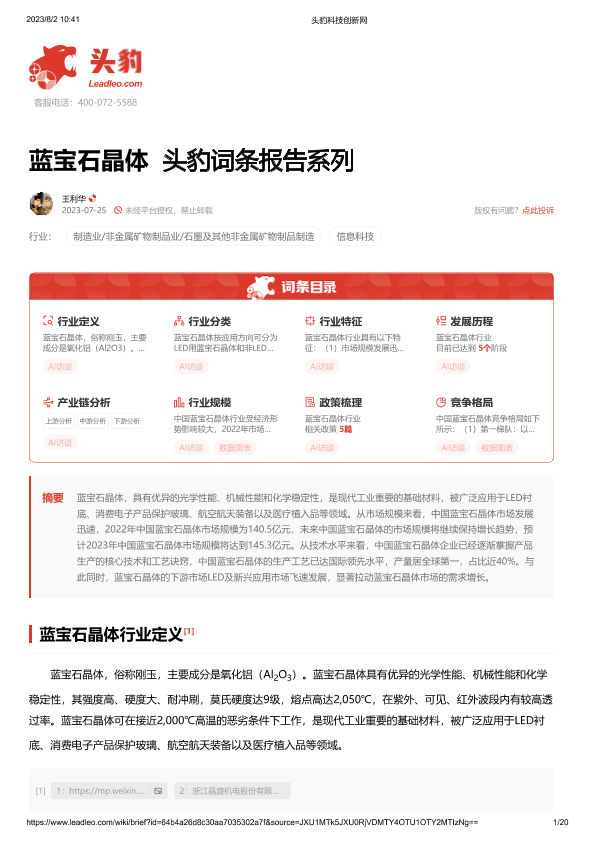 【头豹研究院】【20230725】蓝宝石晶体 头豹词条报告系列-20页